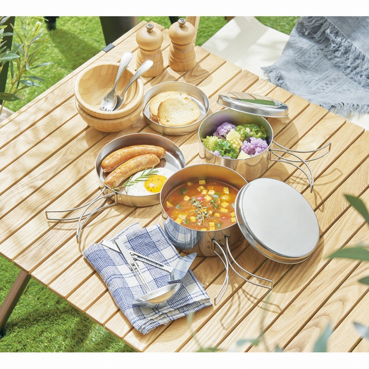 商品内容●商品:フライパン(約径14.5cm)・ソースパン(約径14×高さ7cm・1.07L)・ソースパンカバー(約径14.5×高さ1.6cm)・ミルクパン(約径12×高さ6.5cm・730ml)・ミルクパンカバー(約径12.7×高さ1.5cm)・ミルクパントレー(約径11.8×高さ2.6cm)・スライド式お玉・スライド式ターナー・スプーン・フォーク各1