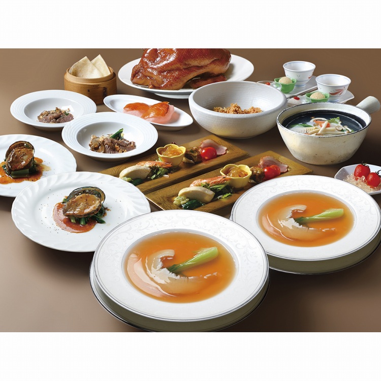 ●内容:冷菜・温菜・ふかひれスープ・魚料理・肉料理・麺飯料理・デザート