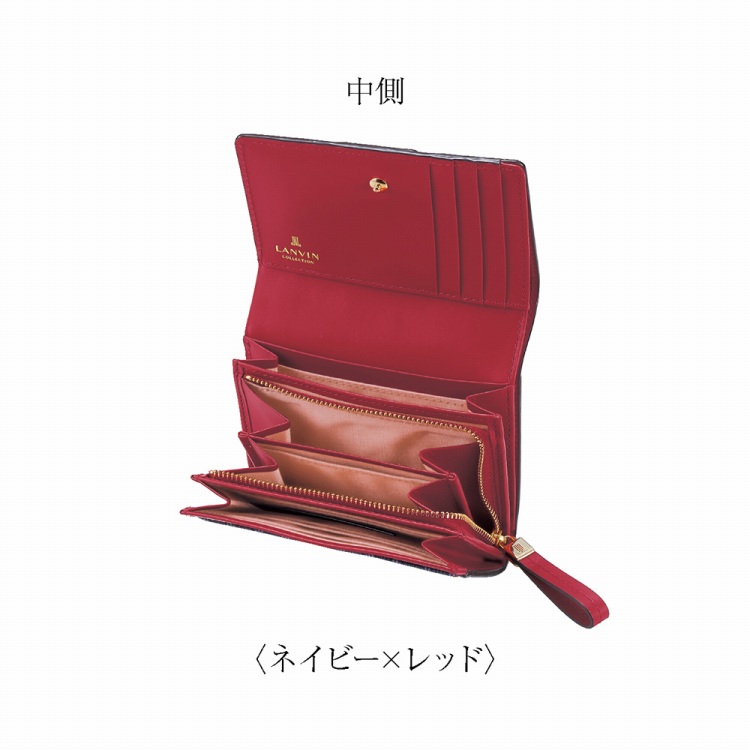 ●内容:内部/札入2室・ファスナー式小銭入(仕切り付)1室・カード入×16・ポケット×5、背面/オープンポケット×1、開閉部ホック式