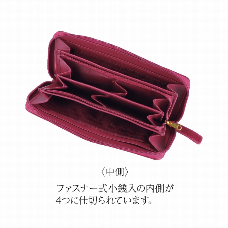 ●内容:札入2室・ファスナー式小銭入(仕切り付)1室・カード入×12・ポケット×2、開閉部ファスナー式