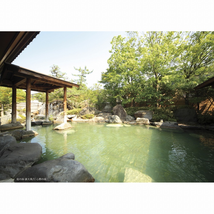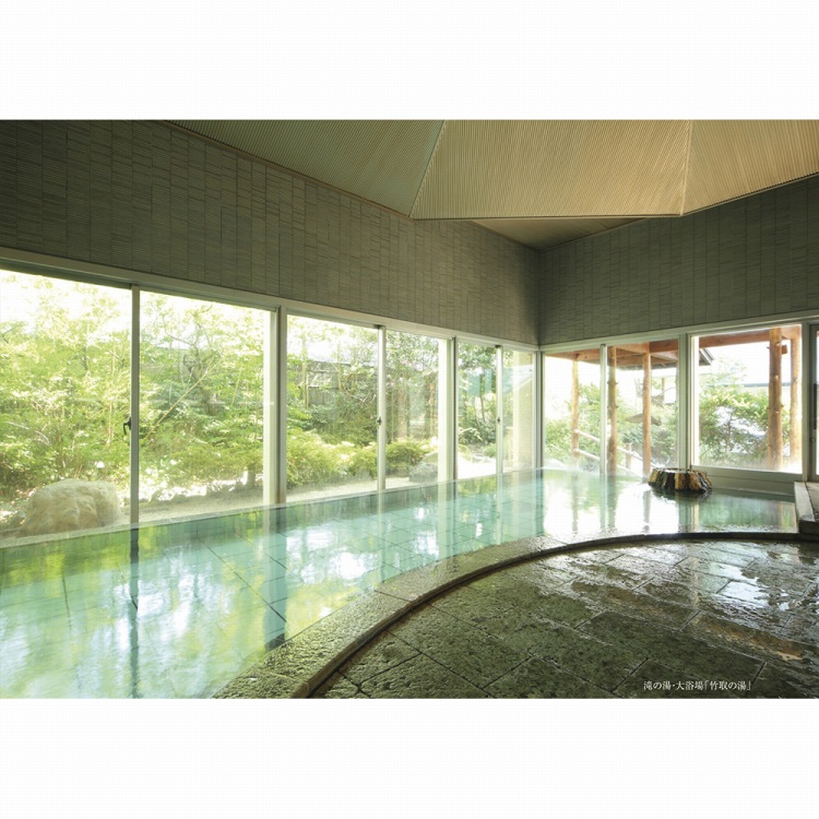 約1000坪に広がる日本庭園風呂は、閑静な庭園に包まれた「庭の湯」と、源泉の滝を囲む「滝の湯」に分かれています。