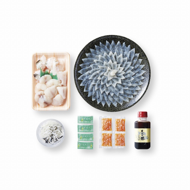 商品内容●セット内容:刺身120g・皮60g・ふぐちり300g各1、ふくポン酢・もみじおろし・かぼす果汁付