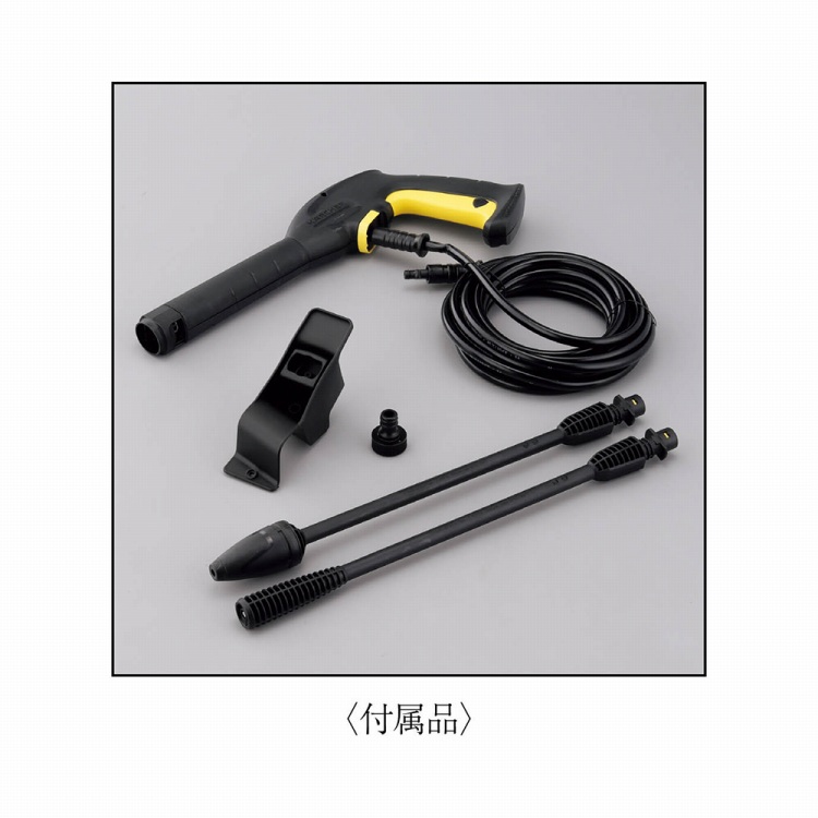 ●内容:トリガーガン・高圧ホース(約6m)・ワンジェットノズル・サイクロンジェットノズル・ガンホルダー・本体側カップリング付・最大許容圧力8MPa・コードの長さ約5m