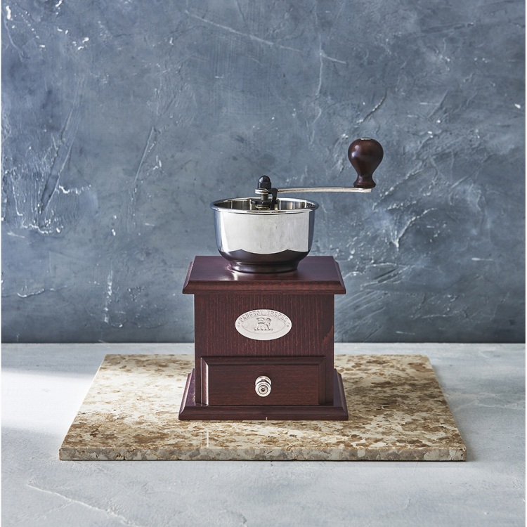 1840年から製造されている「プジョー」のコーヒーミル。ステンレス製のグラインダーで豆を「切るように」挽くことで、コーヒー豆本来の持つ味や香りを引き立たせます。挽きながらコーヒーの香りが楽しめるカップ型のミルです。