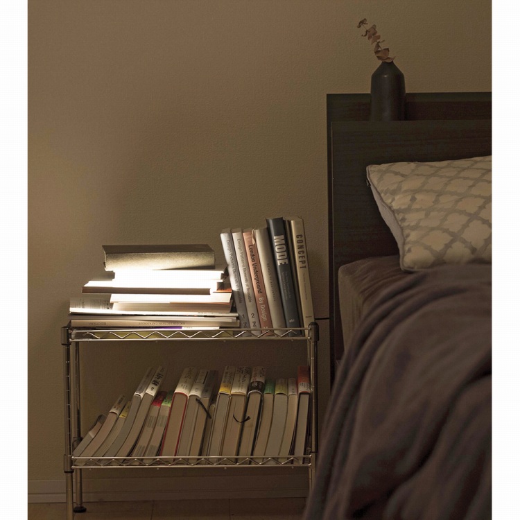 本棚の中や積み重ねた本の間に置かれたNIGHT BOOKを引き出す。それは本棚から光を引き出すように、隙間からやさしい光が広がる。本が光るという驚き。詩的な空間。ただ本一冊分のスペースさえあれば設置でき、両面が発光するため縦向きでも横向きでも使用が可能。消したい時は、ただ本を戻すだけ。手が触れる背表紙の部分にはヌメ革が貼られており、使い込むほどにお気に入りの一冊のような愛おしい存在になっていく。メイド・イン・八潮にこだわる「ワイ・エス・エム」。マンション、高級列車、ホテルの照明を作っていた裏方が、デザイナーと手を繋ぎ、ヨーロッパで出品した照明を認められ、ブランドを立ち上げる。光と板金を熟知した職人が作る照明。こんな小さな町工場で生み出されていると感動する。ひとの手のぬくもりをどこかに感じる端正なプロダクトは、流行に左右されることのないスタンダードになっていくはずです。