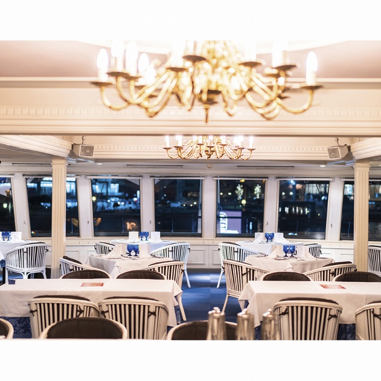 神戸ハーバーランドのロケーション、非日常的な空間、素敵なディナーコースを、生演奏と共に特別な船上でお楽しみください。