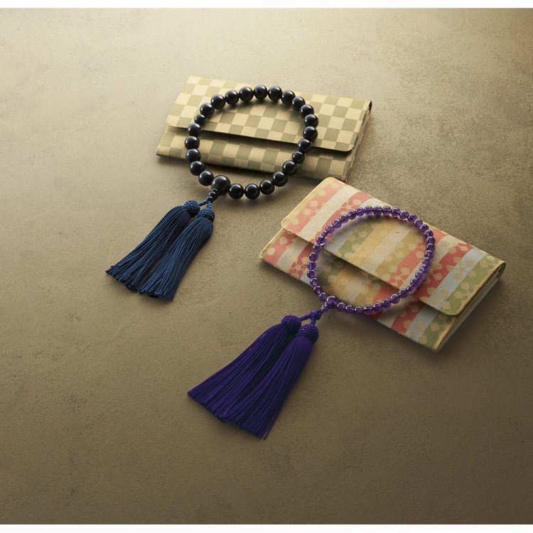 葬儀、法要などでは、念珠を持つことが礼儀とされ、身だしなみのひとつとして用意しておきたい弔事のアイテムです。