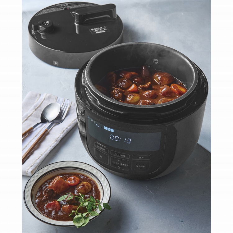10種類の自動調理メニュー搭載の電気圧力鍋。