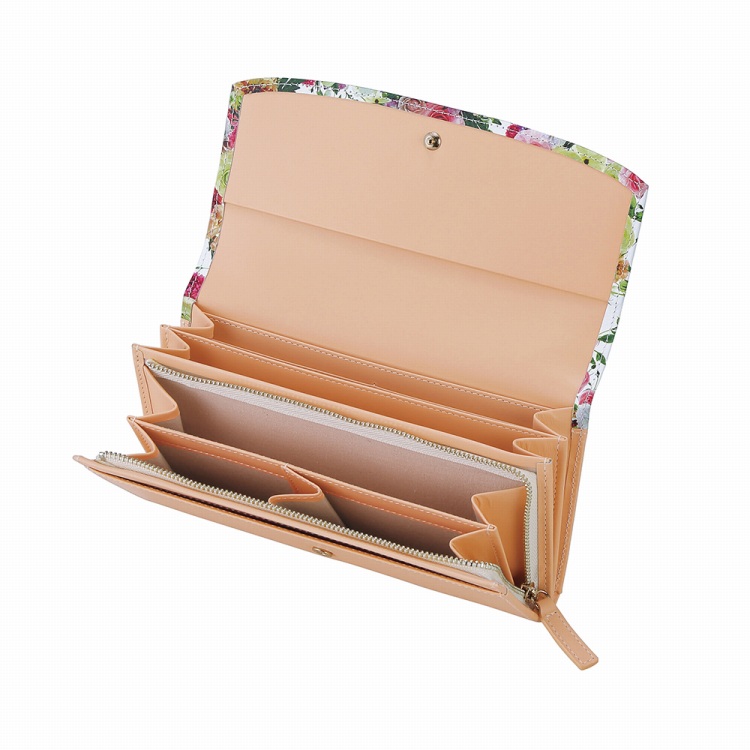 国産の革を使用し、ラナンキュラス柄を施した長財布です。