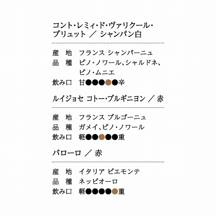 商品内容●コント・レミィ・ド・ヴァリクール・ブリュット750ml×2、ルイジョセ コトー・ブルギニヨン750ml×2、バローロ750ml×2、ソムリエナイフ付