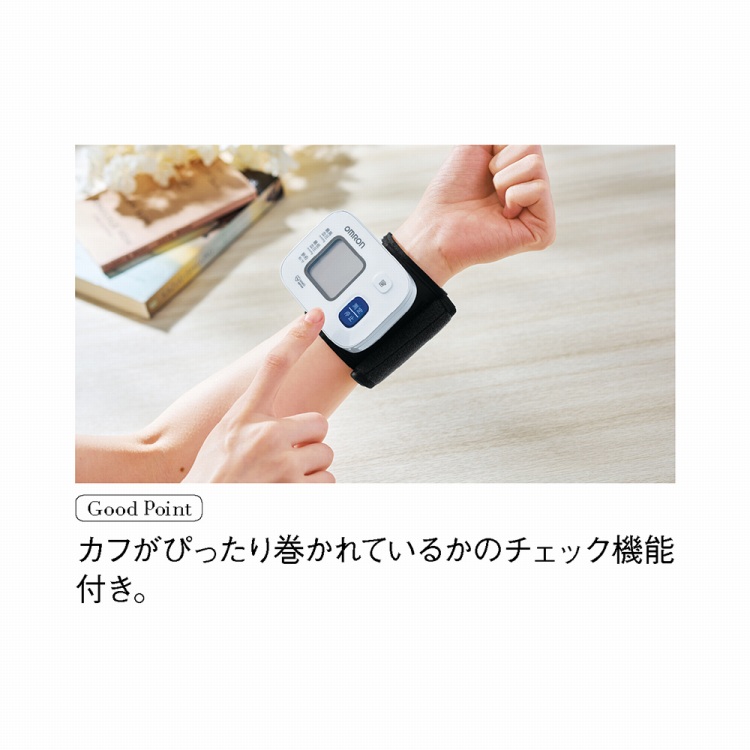 「カフぴったり巻きチェック」で、測定のたびにカフ(腕帯)が適切な強さで巻かれているかチェックしてお知らせします。