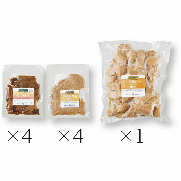 商品内容●セット内容:ソミート炙り焼き100g・ソミートしょうが焼き100g各4、ソミート唐揚げ500g×1