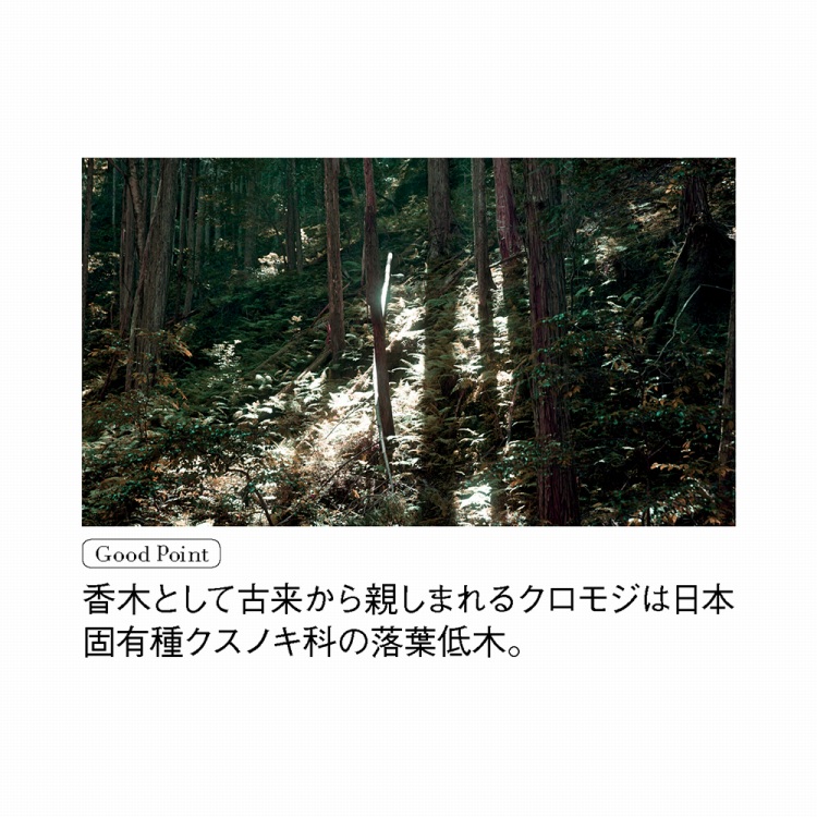 京都北山で取れたクロモジの木から抽出された精油と芳香蒸留水で仕上げたピローミスト。
