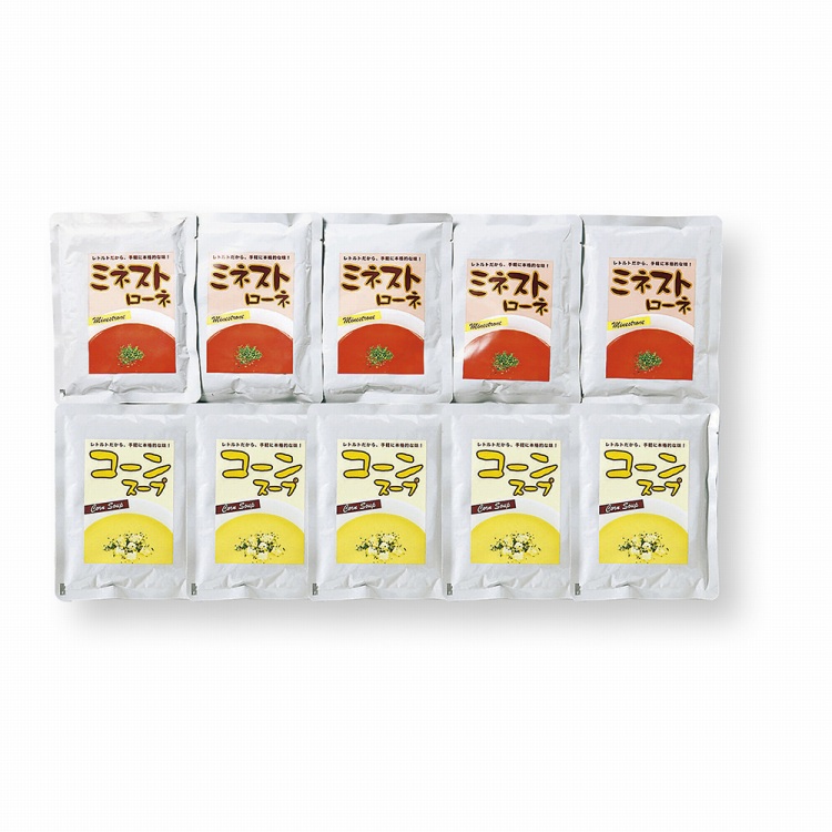商品内容●セット内容:コーンスープ150g・ミネストローネ150g各5