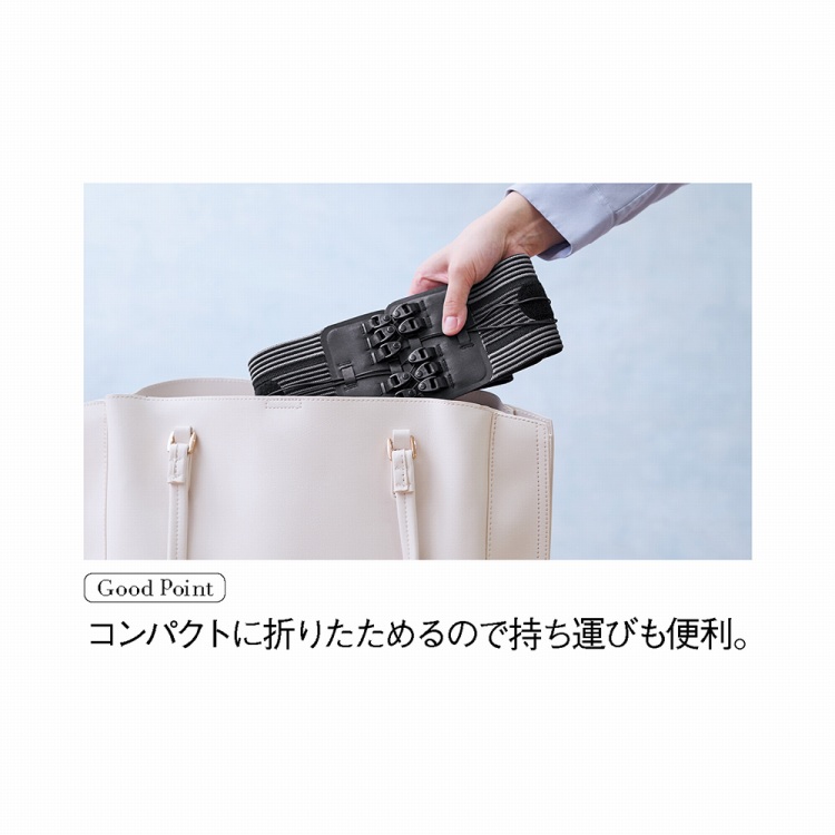 滑車の原理により、ハンドルを軽く引っ張るだけで腰まわりをしっかり締めつけます。
