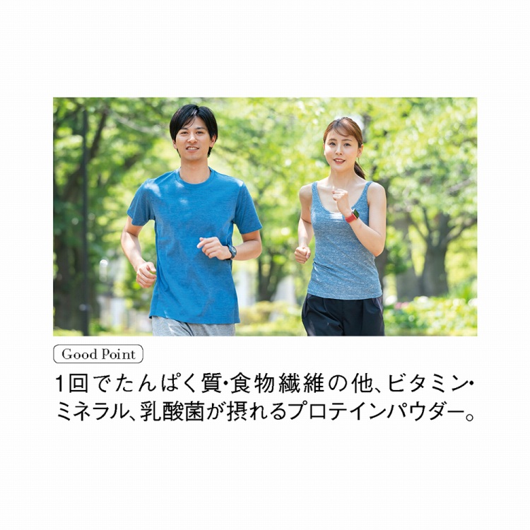 乳由来たんぱく質のホエイプロテインを含む24種類の成分がまとめて摂れるプロテインパウダー。