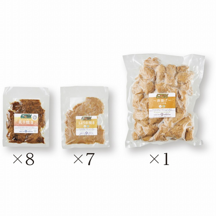 商品内容●セット内容:ソミート炙り焼き100g×8、ソミートしょうが焼き100g×7、ソミート唐揚げ500g×1