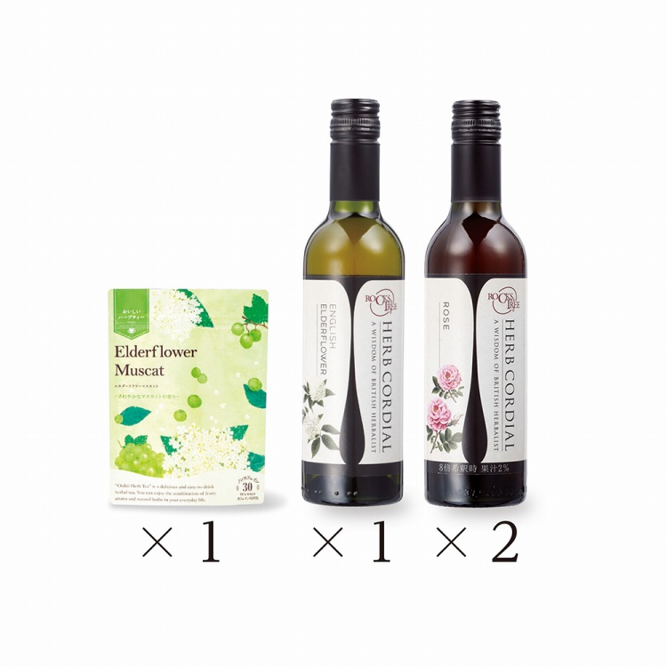 商品内容●セット内容:ハーブティー(エルダーフラワーマスカット〈30袋入〉)・ハーブコーディアル有機イングリッシュエルダーフラワー360ml各1、ハーブコーディアル有機ローズ360ml×2