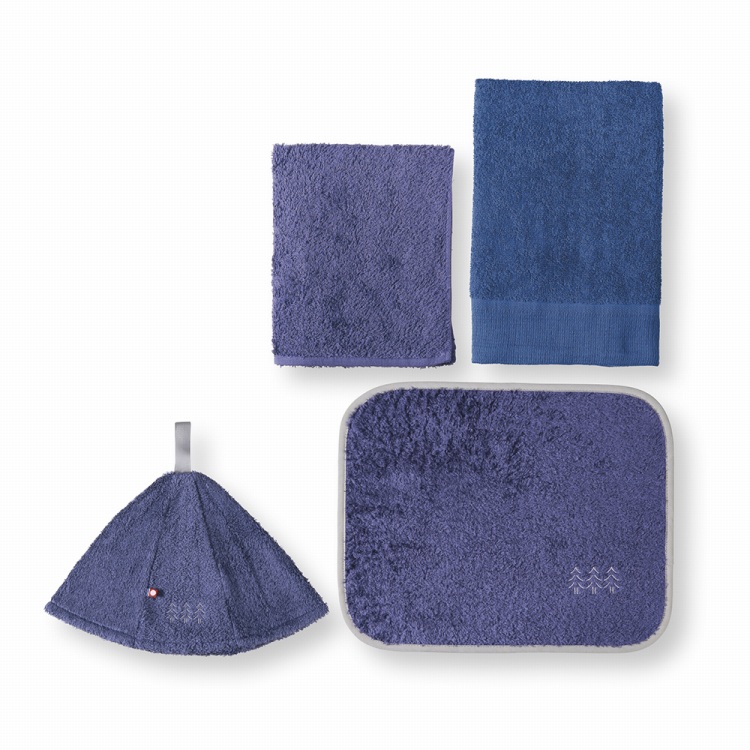 ソフトな風合いと軽さを感じるタオル生地から作られたサウナハット・サウナマット・カラータオル・サウナタオルの4点セット。