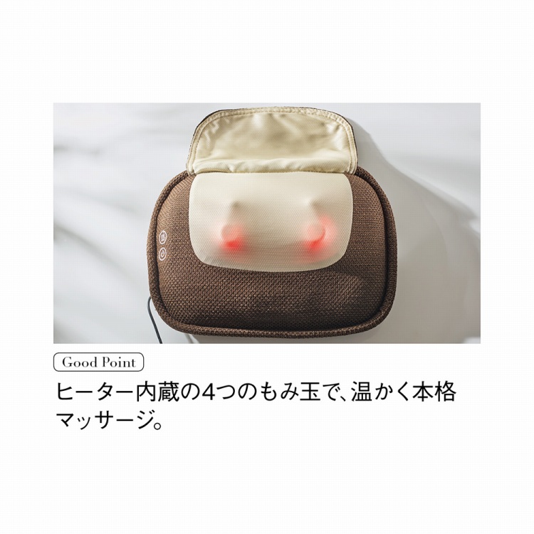 ヒーター内蔵の4つのもみ玉で、温かく本格マッサージ。
