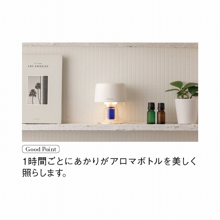1時間に1度芳香することで、身体が香りに慣れてしまうことを防ぎ、お気に入りの香りをいつでも新鮮に楽しむことができるアロマディフューザーです。