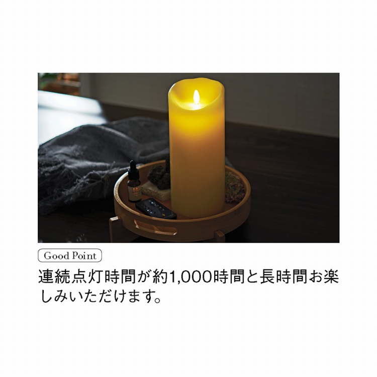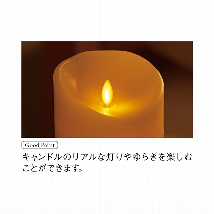 LEDライトなので、お子様やペットがいるお部屋でも安心してご使用でき、場所を選ばずキャンドルの雰囲気を楽しめます。