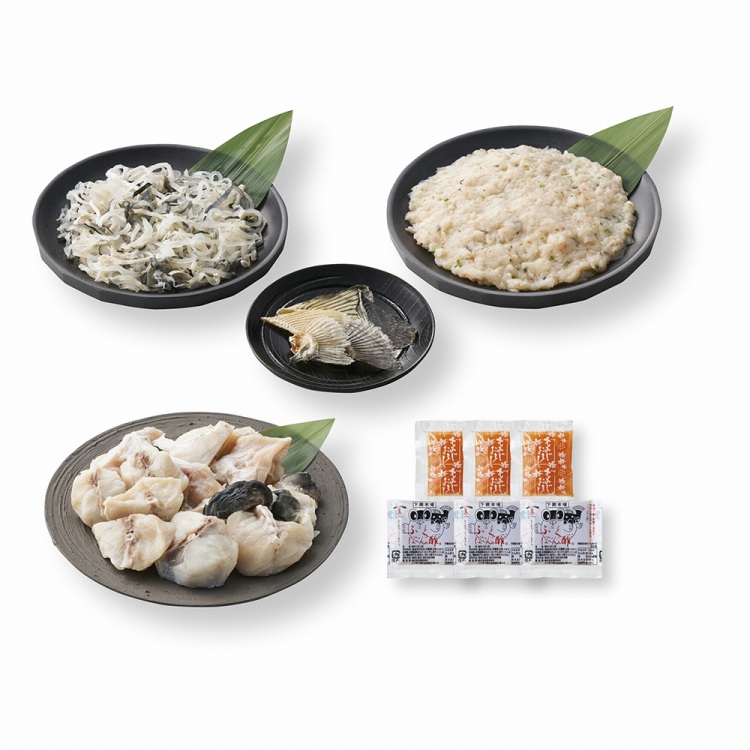 商品内容●セット内容:ふぐちり500g・皮100g・とらふぐ皮入り生つみれ160g・ヒレ(5枚入)各1、ふくポン酢・もみじおろし付