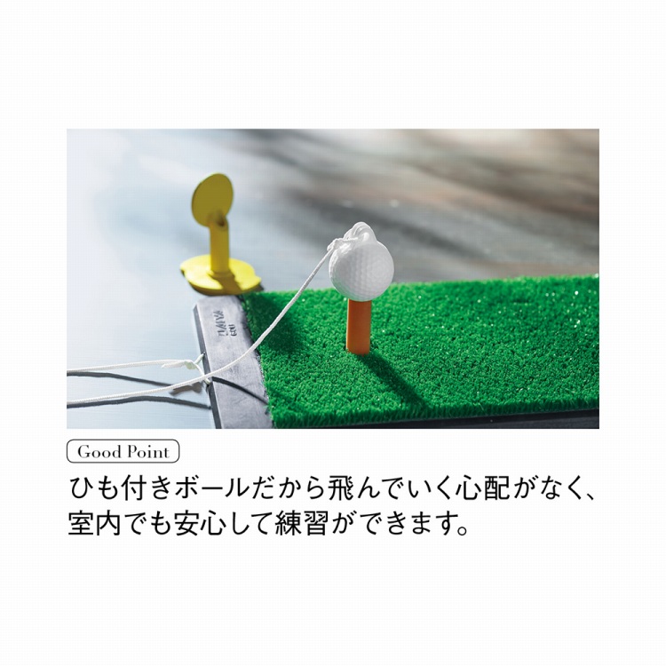 ひも付きボールを使用することで、ドライバーやアイアンの方向を確認しながらショット練習を行うことができます。