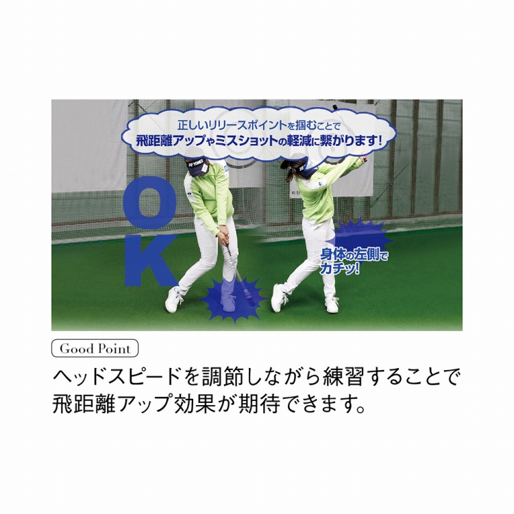 インパクトゾーンで伸びきるスイングを意識することで理想のタメとリリースポイントを実感できます。