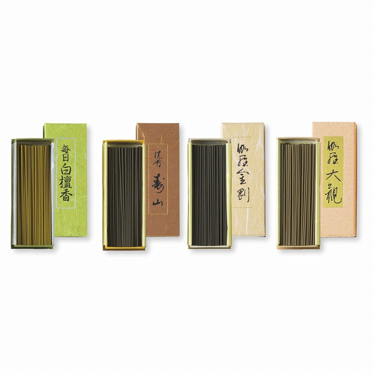 重厚感のある「毎日白檀香」、きりりと深い香りの「沈香寿山」。