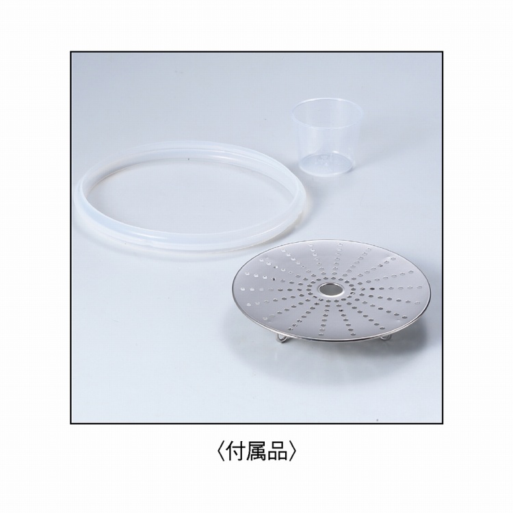 ●内容:計量カップ・蒸し台・内ふた用パッキン(予備)・レシピブック付