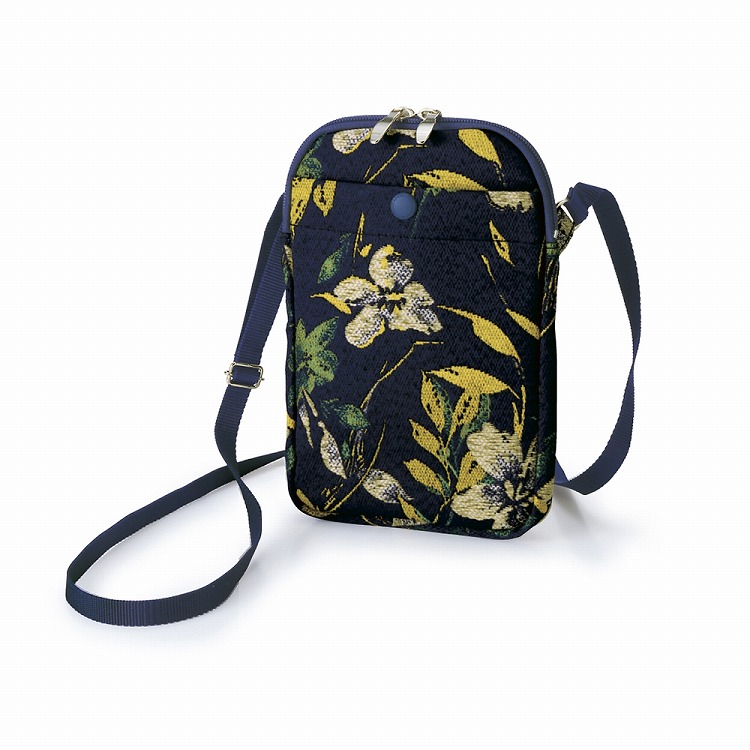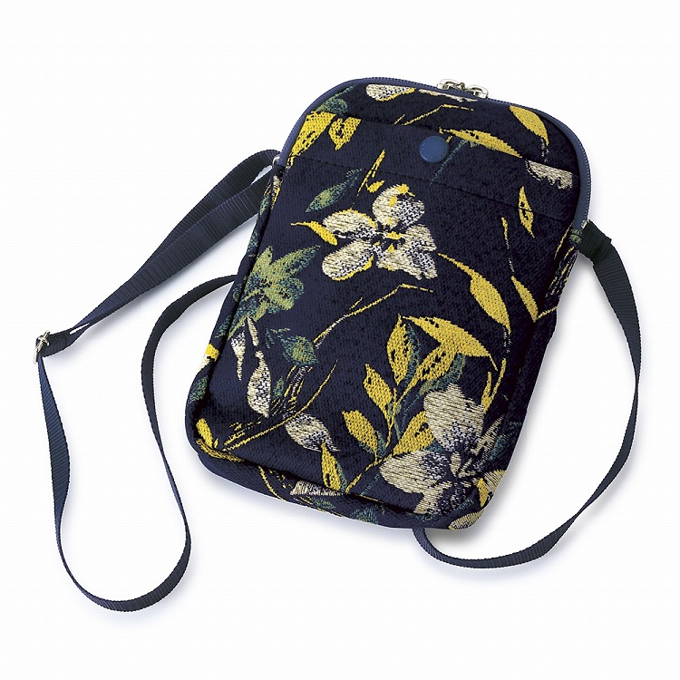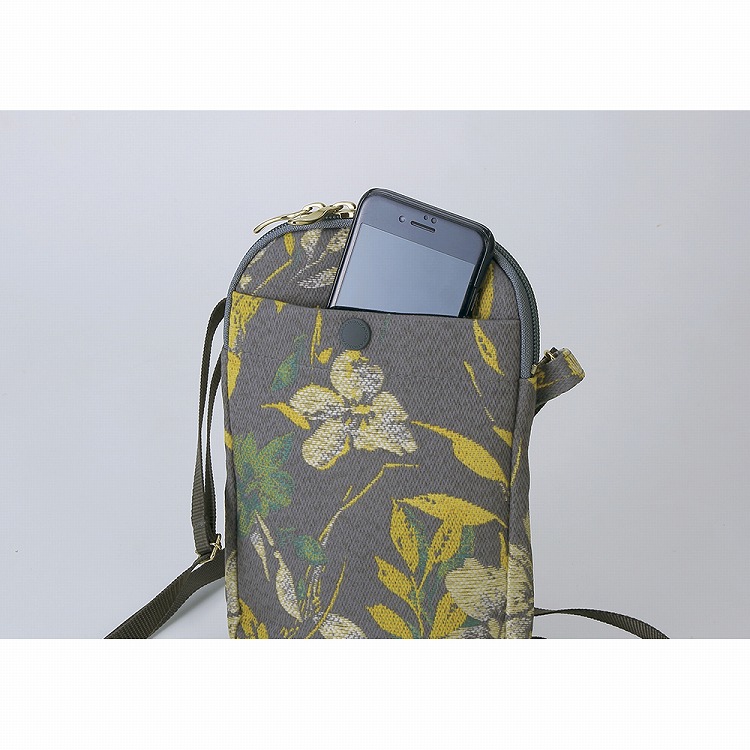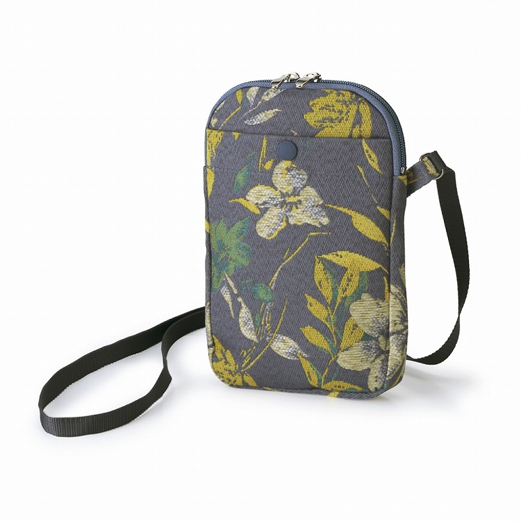 日本製にこだわり、品質本位のものづくりを続けている、織生地の特徴を生かしたレディースバッグのメーカーが手掛けたスマホポシェット。