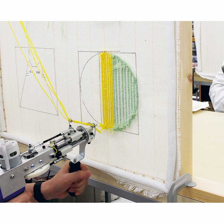 タフティングとは「タフティングガン」という専用の機械を使用し、毛糸で絵を描いていくラグ製法のひとつです。