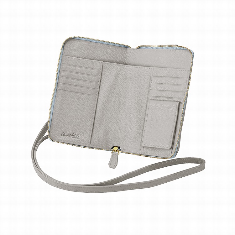 ●内容:内部/オープンポケット×2・札入・ボックス式小銭入各1室・カード入×10、前面/オープンポケット(内寸/約9.5×14.3×0.8cm)×1、背面/カード入×1、開閉部ファスナー式、着脱式ショルダーベルト