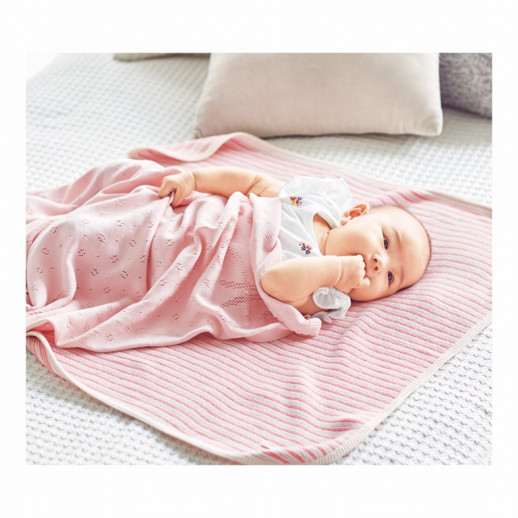 さらっとした肌触りとフィット感が気持ちよく、ベビーのおくるみとしても、掛けものとしてもご使用いただけます。