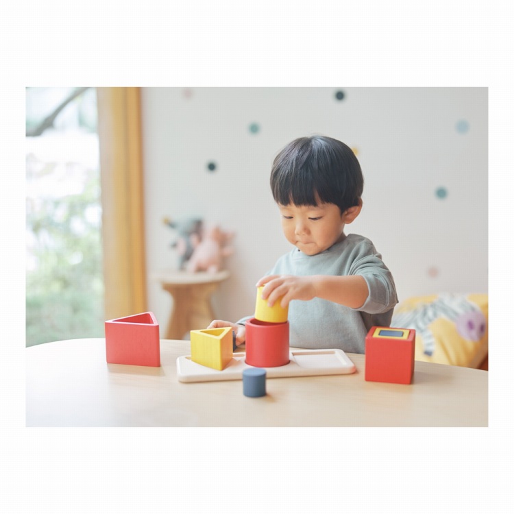 ●内容:ネスティングパズル/入れ子型幾何学ブロック3種(正方形・円柱・三角柱)