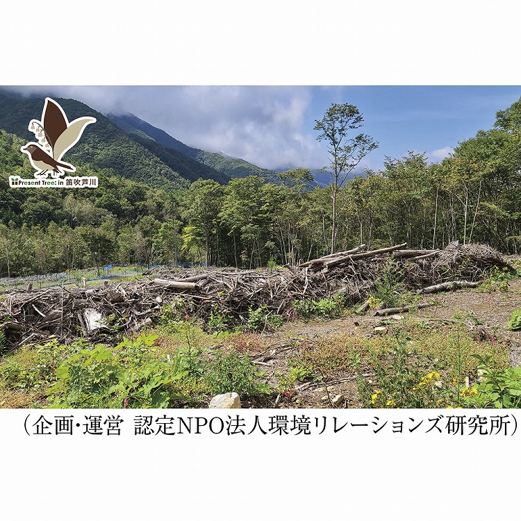 プレゼントツリーを申し込むと、台風の被災林や里山として保全すべき土地に樹が植えられます。