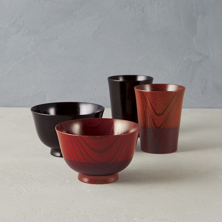 ろくろ挽き、拭き漆などの伝統技術を生かして作られています。
