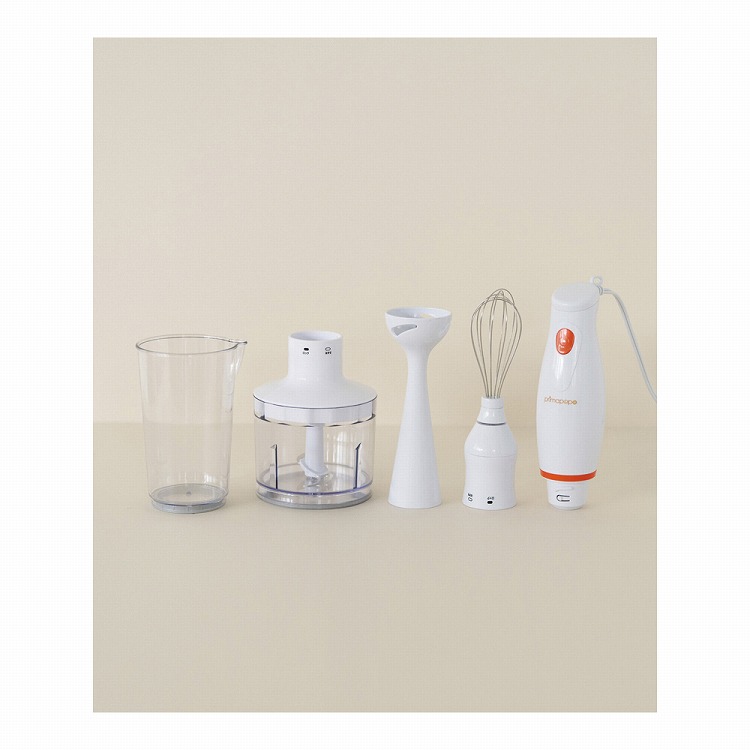 商品内容●商品:ブレンダー(約径6.5×長さ36cm・重量630g)・チョッパー容器(約径12×高さ16cm)・ブレンドカップ(約径9.5×高さ15.8cm・約500ml)・泡立各1