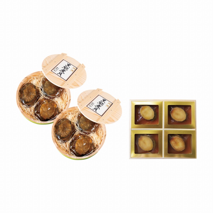 商品内容●セット内容:樽詰め黒あわび煮貝3粒(合計240g)×2、 あわび磯煮4粒(合計240g)