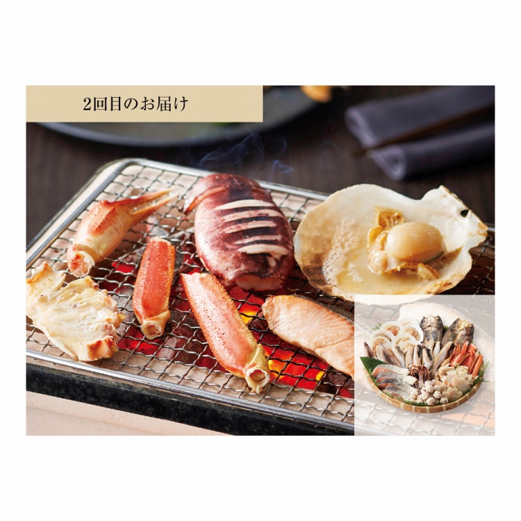 ●セット内容:ボイルズワイガニカット600g・生タラバガニカット500g各1袋、たこ入つみれ×18、帆立片貝・姫鱈一夜干し50g各8、鮭のちゃんちゃん焼き(秋鮭味噌漬切身80g・味噌たれ付)×4、ほっけ一夜干し200g・ツボ抜するめいか100g各2