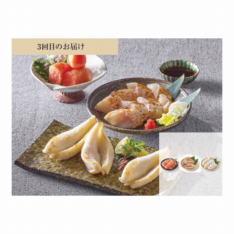 ●セット内容:まふぐのたたき50g×6(ぽん酢・もみじおろし付)、しろさばふぐ一夜干し720g・辛子明太子960g
