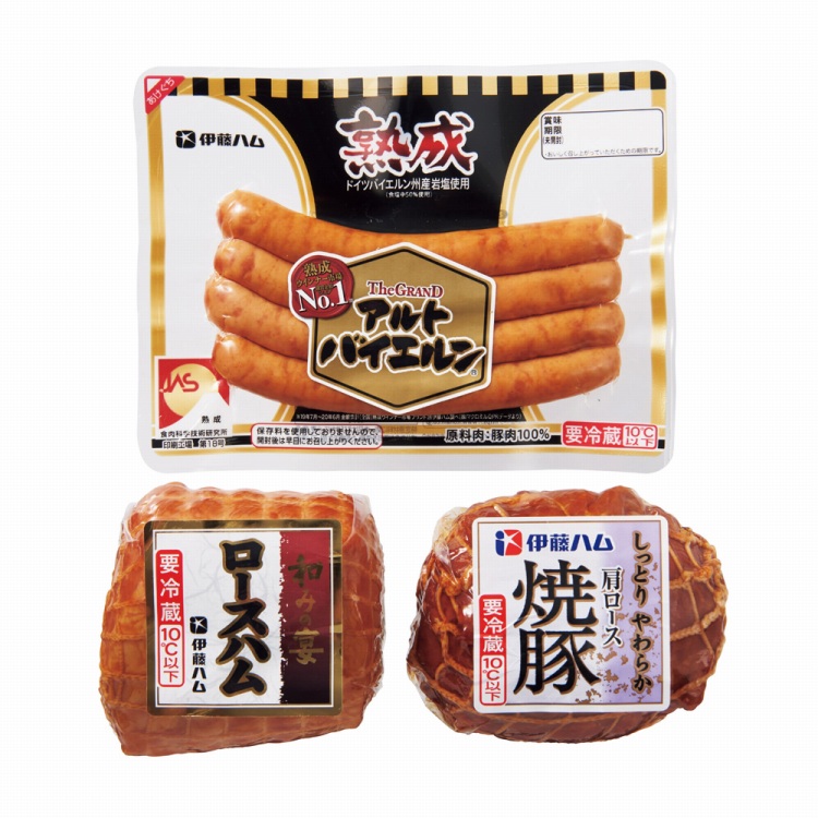 商品内容●セット内容:ロースハム380g・焼豚肩ロース280g・熟成ウインナー110g各1
