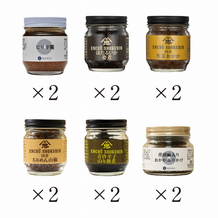 商品内容●セット内容:ピリ辛糀85g・ほたるいかの姿煮60g・国産生姜おかか60g・国産ちりめん山椒40g・青唐辛子のり佃煮80g・荏胡麻入りおかかふりかけ60g各2