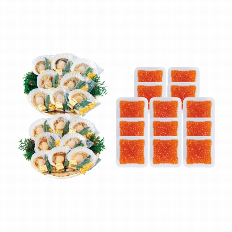 商品内容●セット内容:ホタテバター焼きセット(ホタテ・バター各1、カットアスパラ10g・コーン10g)×16、いくら醤油漬け50g×13
