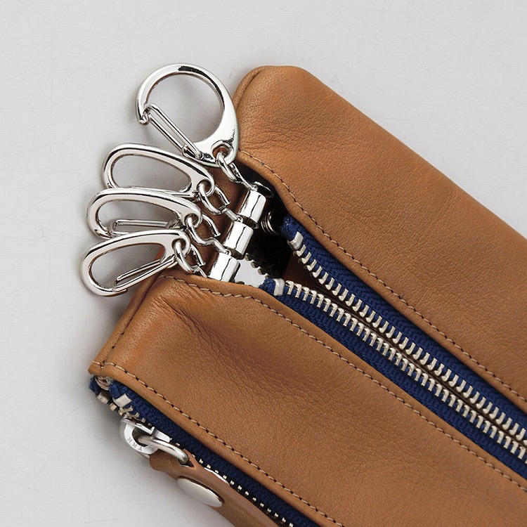 ●内容:ファスナー式小銭入1室・ファスナー式キーケース(キーフック×4)1室・カード入×1、キーリング付