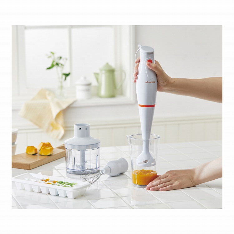 商品内容●商品:ブレンダー(約径6.5×長さ36cm・重量630g)・チョッパー容器(約径12×高さ16cm)・ブレンドカップ(約径9.5×高さ15.8cm・約500ml)・泡立各1