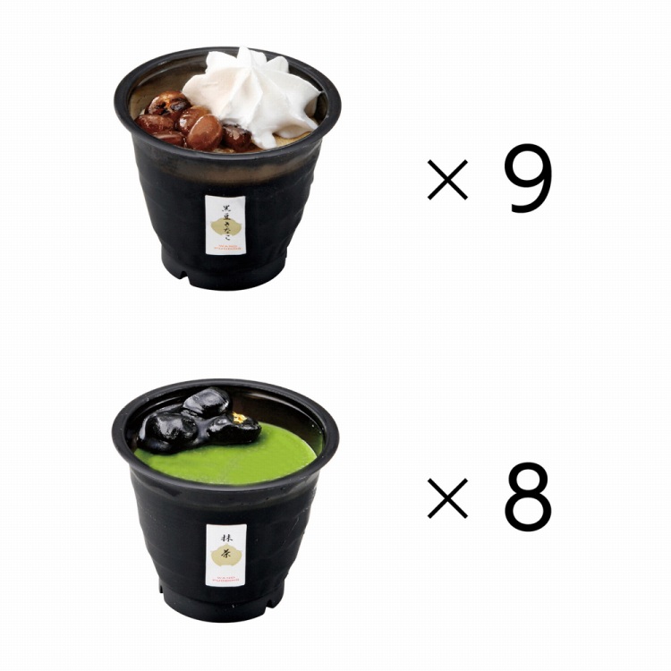 抹茶・黒豆きな粉の2種の味をお楽しみいただける、中村楼監修の和のプリン。