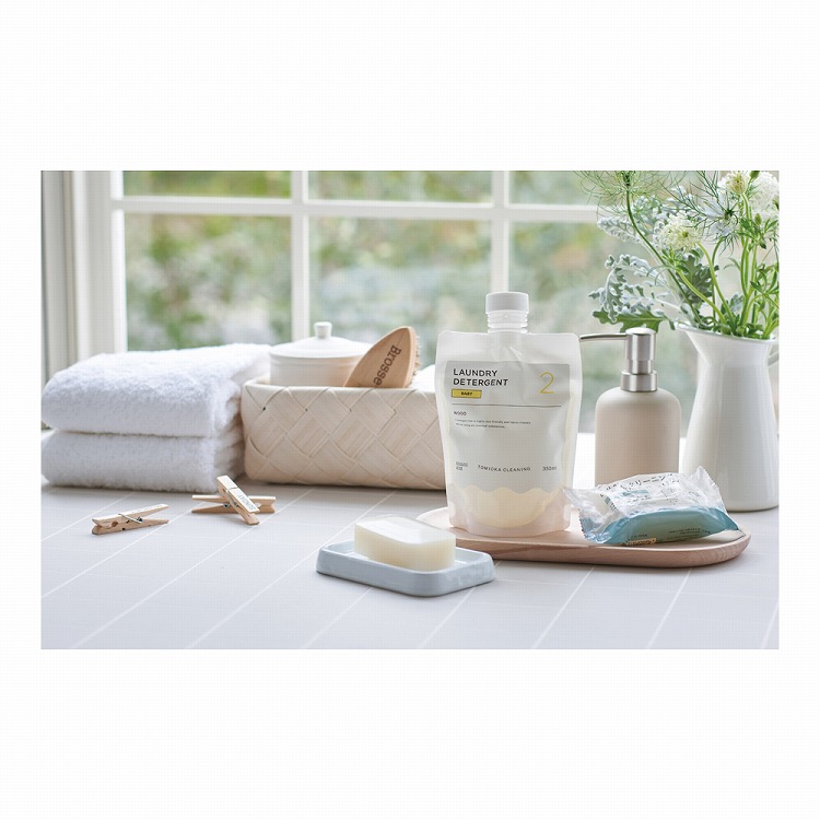 人と環境にやさしい豊かな暮らしをつくる 1950年に北海道中標津町で生まれた『とみおかクリーニング』。老舗クリーニング店だからこそ、人と環境にやさしくありたい。そして洗濯のプロであるクリーニング店だからこそ、気になるご自宅での衣類のケア。洗濯は人類が古くから続けている「リユース」のひとつで、人々が人生の中で多くの時間を費やしている家事のひとつとも言えます。その時間がより楽しく、暮らしの豊かさにつながるように創業から75年以上にわたり現場で培ってきた技術や知識、そしてお客様の声を サービスや商品づくりへ活かしてきました。それらを通じてこれからもワクワクするような洗濯ライフを提案します。 洗濯用洗剤については、汚れ落ちと環境負荷とのバランスにこだわり、汚れはしっかり落としつつ、可能な限り生分解性の高い成分を使用しています。ベビー用洗濯洗剤は化学的な成分を含まずその名の通りベビー用衣類のほか、肌の弱い方にもおすすめです。また、固形石鹸のマスク・ふきん用は、無添加の安心素材で直接肌に触れるマスクやふきん洗いに最適です。えり・そで・泥汚れ用は頑固な皮脂汚れ、泥汚れに最適な仕様で泡立ちと汚れ落ちの良さにこだわりました。 とみおかクリーニングの洗剤を使うことで毎日の家事がより快適に、また、もっと楽しい時間になりますように。