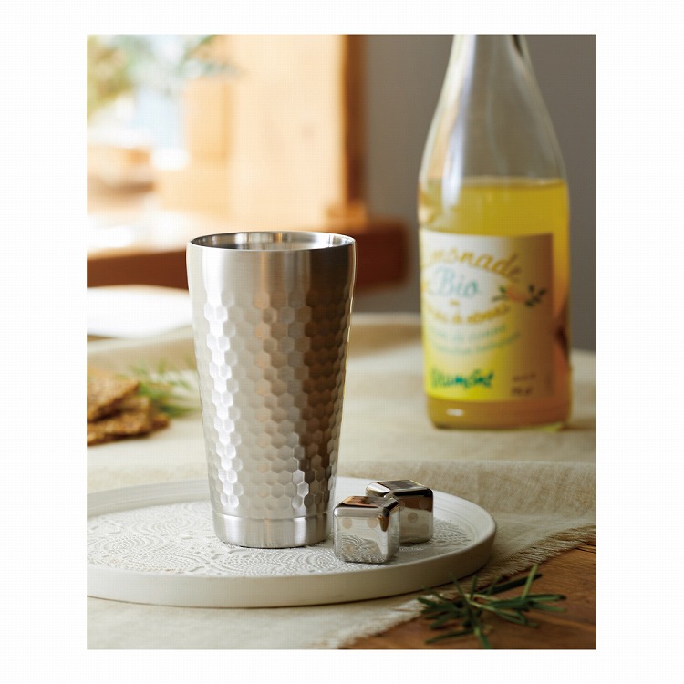 保温・保冷機能に優れた二重構造タンブラーと、氷の代用品として使えるステンレス製アイスキューブ。